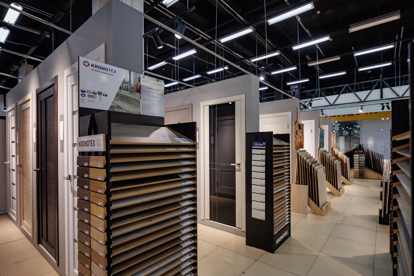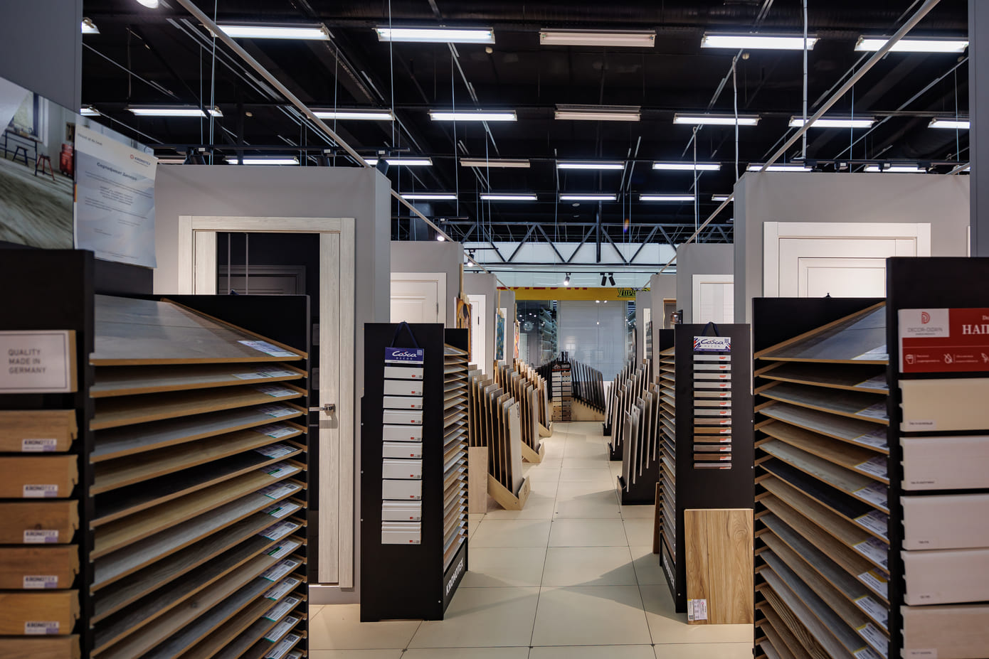 паркет, линолеум, обои, дверную фурнитуру и другие сопутствующие товарные